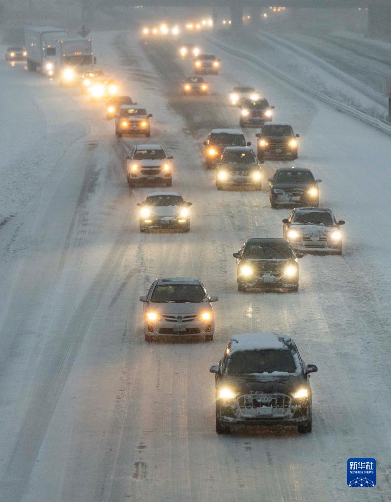 1月25日,在加拿大大多倫多地區米西索加,車輛在積雪的公路上行駛。