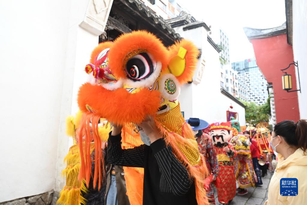 1月26日,在福建省福州市三坊七巷,“正月初五迎財(cái)神”民俗巡游隊(duì)伍在巡游。