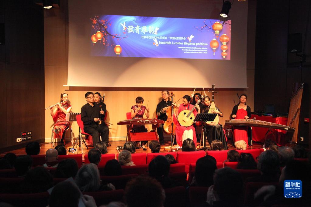 “弦音雅韻”中國民族音樂會當晚在法國巴黎舉行。這是巴黎中國文化中心舉辦的2023“歡樂春節”系列活動之一。