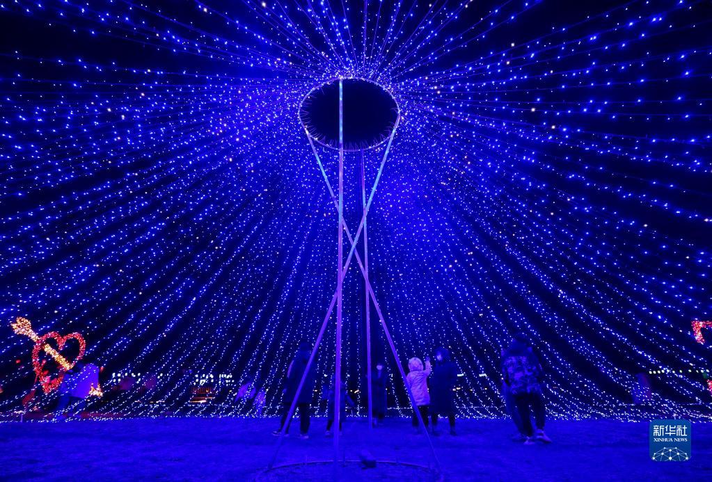 1月25日,游客在河北省石家莊晉州市周家莊鄉第九生產隊欣賞燈光秀。