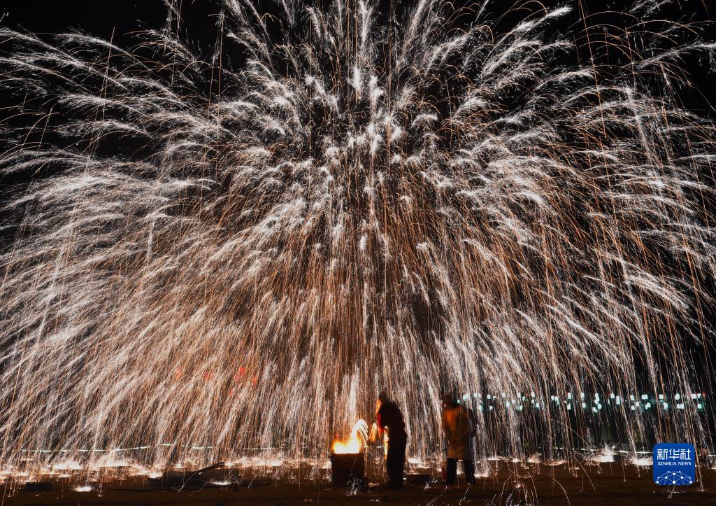 春節假日期間,河北省石家莊晉州市周家莊鄉依托當地旅游資源優勢,通過打造多彩燈光秀、打鐵花、文藝演出等文化活動,吸引游客在春節假日觀光游覽,為人們帶來多樣化的新春體驗,同時也為鄉村帶來可觀收益。