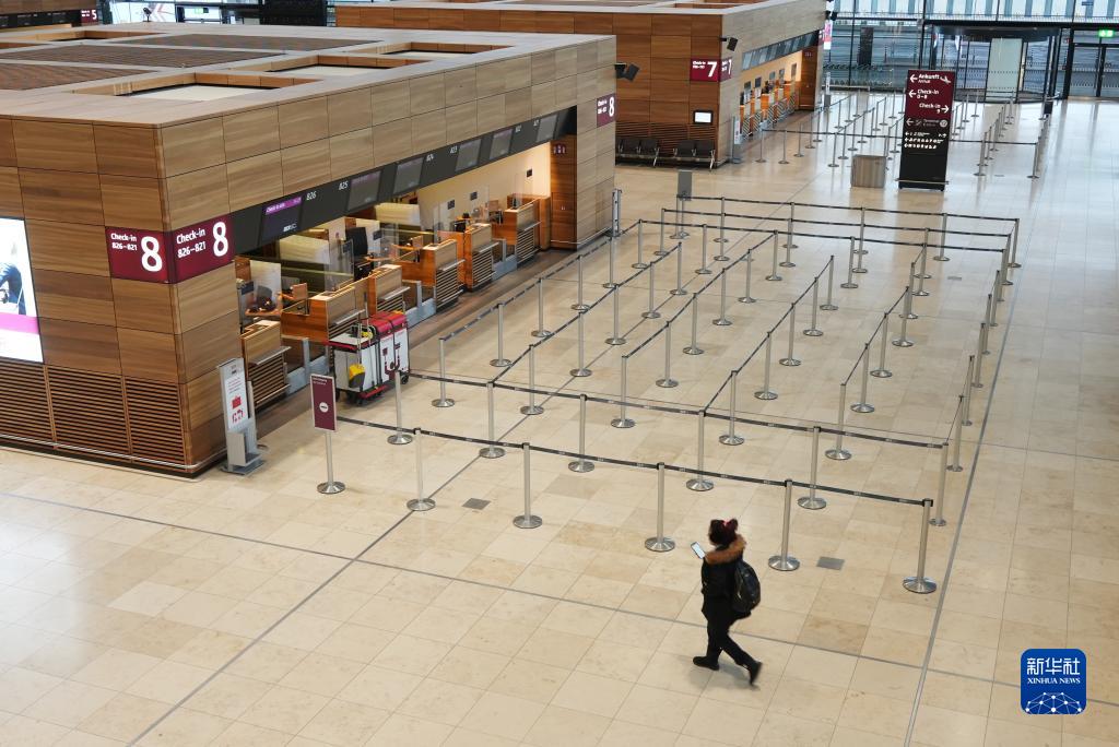 1月25日,一名女子走在德國(guó)柏林-勃蘭登堡機(jī)場(chǎng)航站樓內(nèi)。