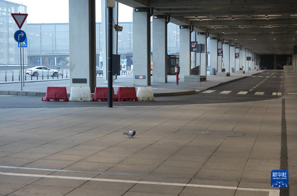 1月25日,一只鴿子在德國(guó)柏林-勃蘭登堡機(jī)場(chǎng)航站樓外停留。