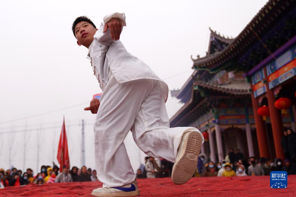 1月26日,梅花拳愛好者在平鄉(xiāng)縣油召鄉(xiāng)八辛莊村表演梅花拳。