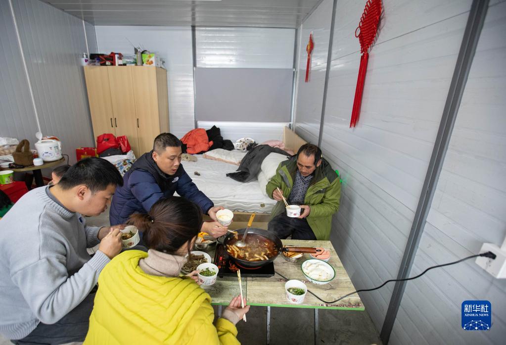 1月26日,瀘定縣磨西鎮磨子溝村李華軍一家在“9·5”瀘定地震磨西鎮安置點吃午飯。