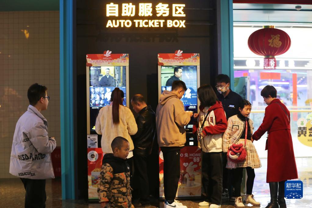 1月26日,人們在甘肅省定西市萬達廣場影城內(nèi)購票。