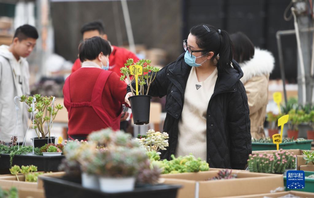 1月26日,市民在鄭州一處花卉市場(chǎng)選購多肉植物。