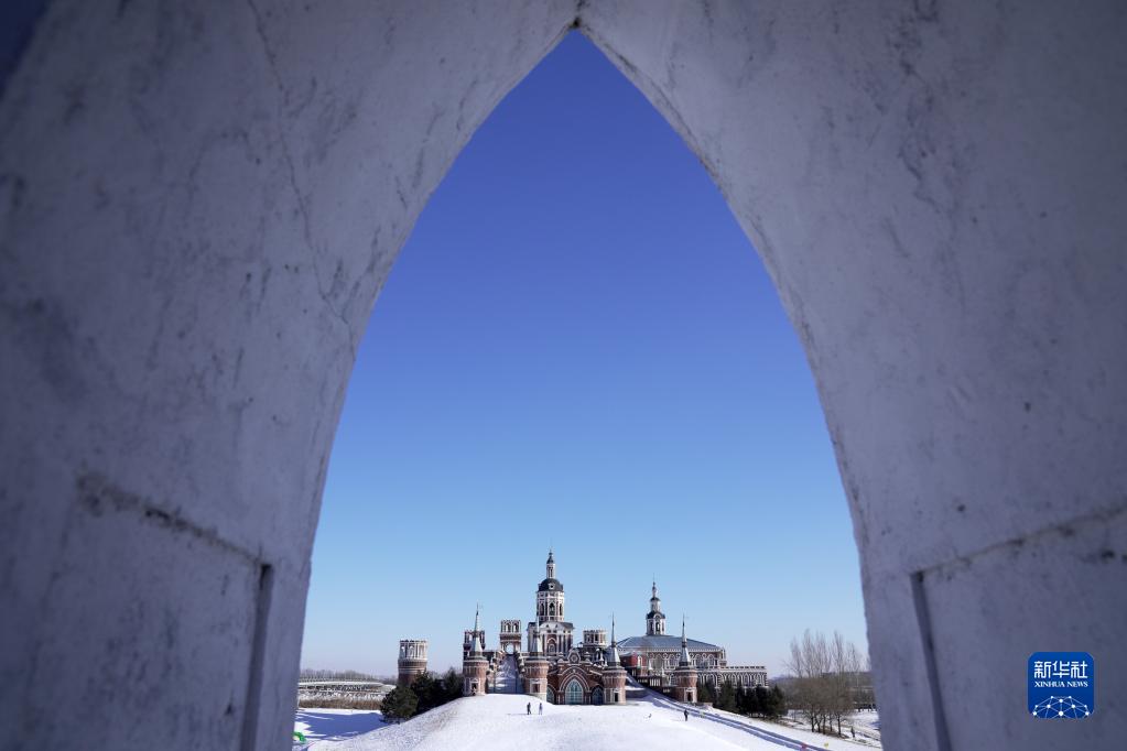 春節(jié)期間,冰城哈爾濱市的旅游景點伏爾加莊園變身冰雪世界,成為游客的旅游目的地。