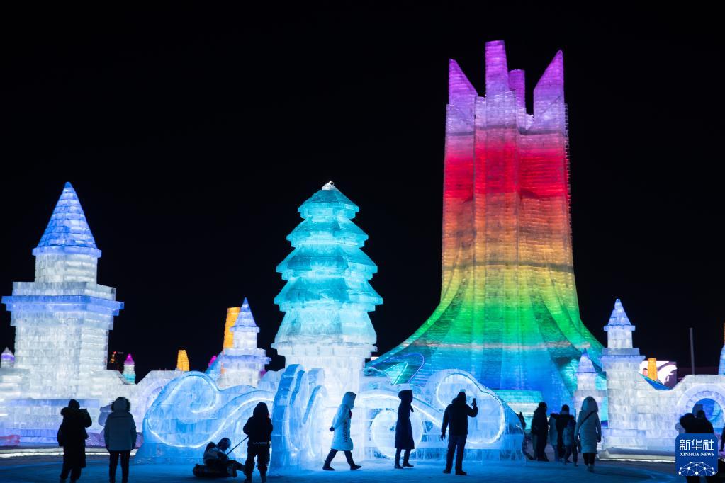 1月24日,游客在哈爾濱冰雪大世界園區(qū)內(nèi)游玩。