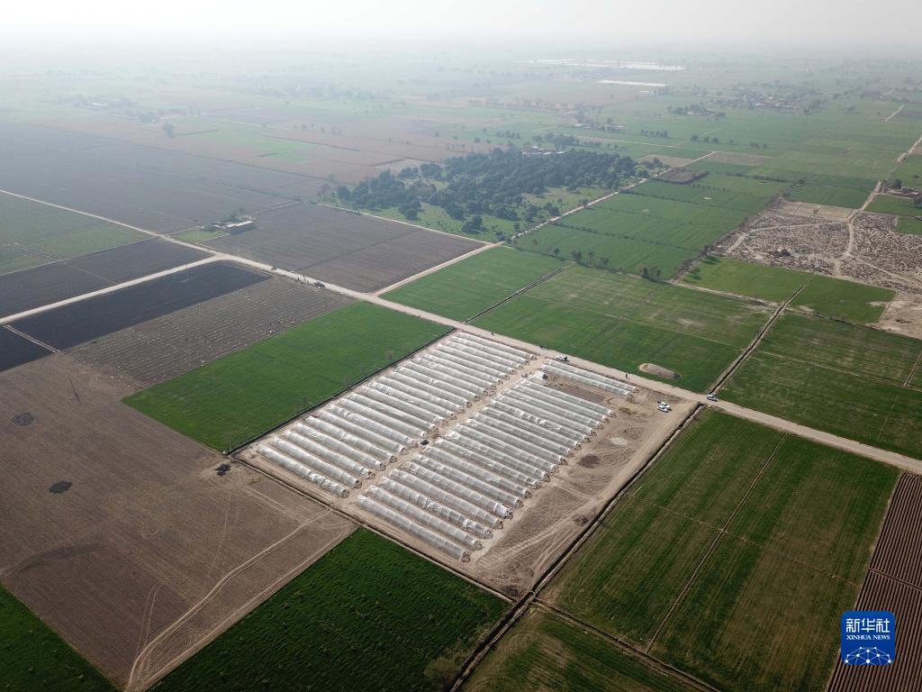 這是1月16日在巴基斯坦旁遮普省木爾坦航拍的農田里的中巴辣椒訂單種植項目辣椒育苗大棚(無人機照片)。