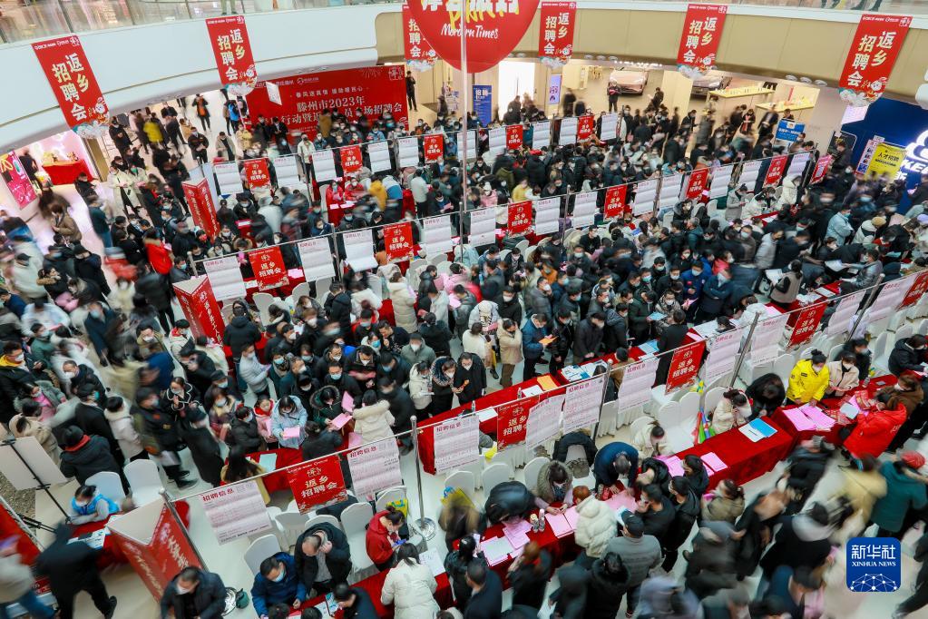 1月27日,求職者在山東省滕州市2023年春風(fēng)行動(dòng)暨返鄉(xiāng)人員專場(chǎng)招聘會(huì)上尋找適合自己的就業(yè)崗位。