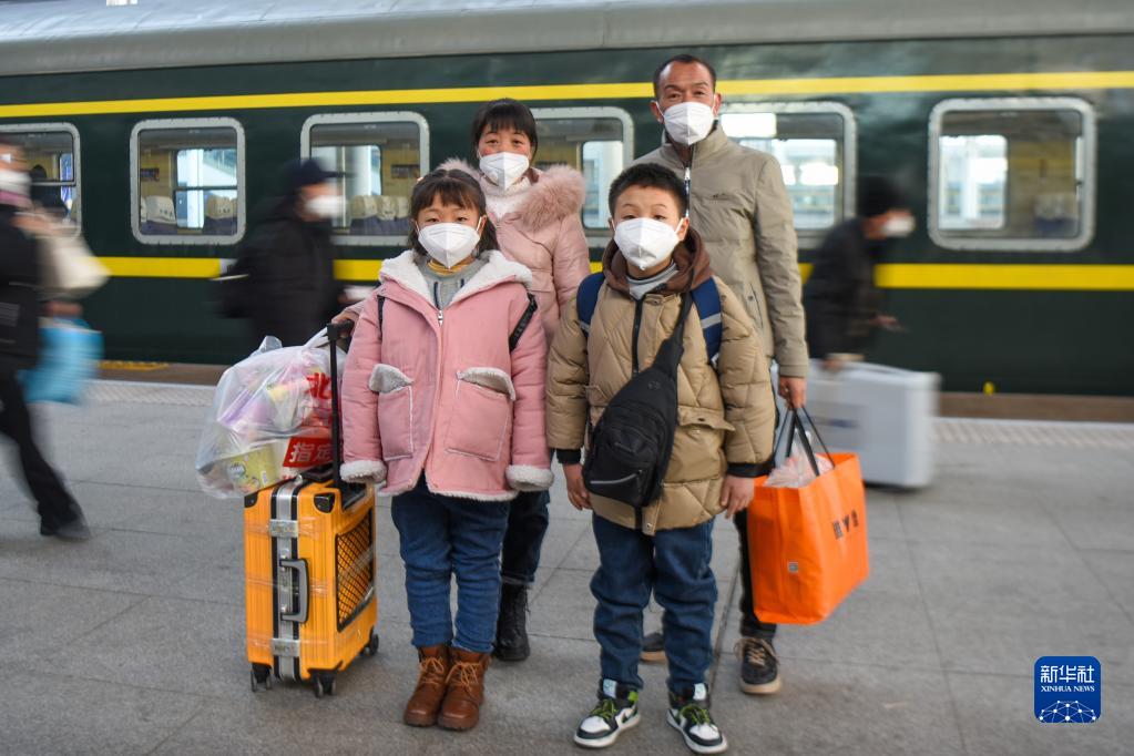 嫁到甘肅省岷縣的新疆呼圖壁縣人汪元芳(后左一)一家在新疆烏魯木齊站準備乘坐火車前往甘肅。時隔兩年,汪元芳帶著全家人回到新疆呼圖壁縣,在娘家度過2023年的春節(1月26日攝)。