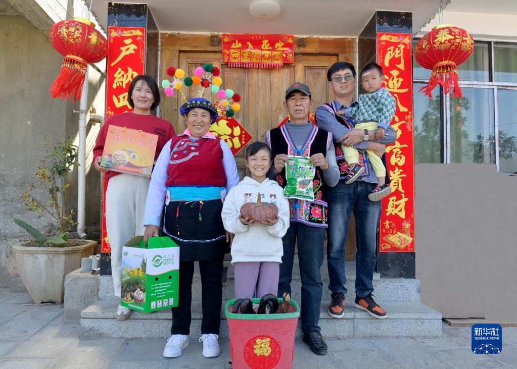 云南省大理白族自治州南澗彝族自治縣小灣東鎮紙房村人蘭云婭出發返回昆明前(左一)和家人的合影(1月26日攝)。