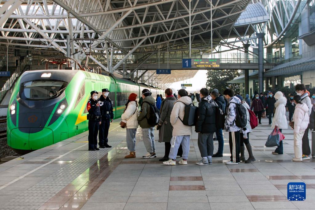 1月27日,旅客在江蘇泰州站排隊侯車。