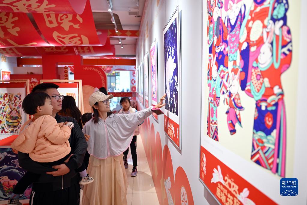 1月27日,游客在海口騎樓老街觀看國潮年藝展。