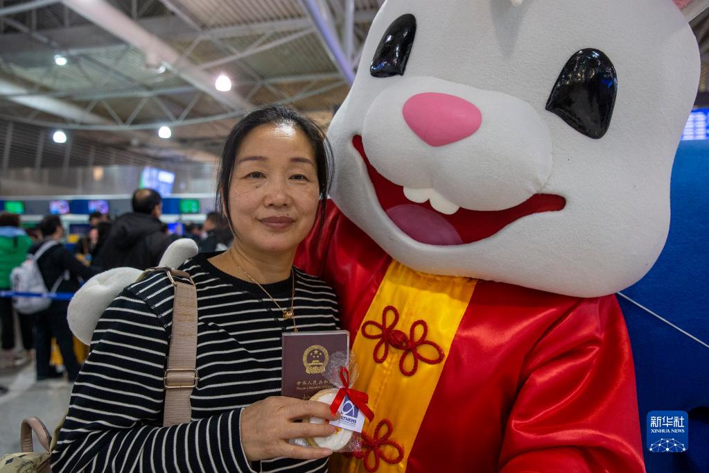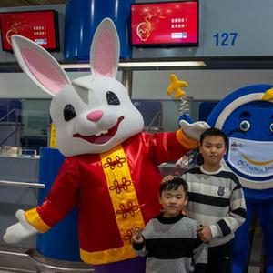 中國農歷兔年春節期間,希臘雅典國際機場推出兔子吉祥物,為乘客送上吉祥與歡樂。