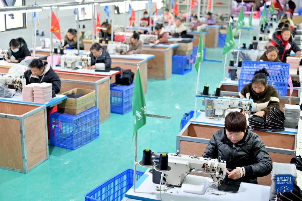 1月27日,在湖南省婁底市雙峰縣走馬街鎮一家箱包企業,工人在車間內忙碌。