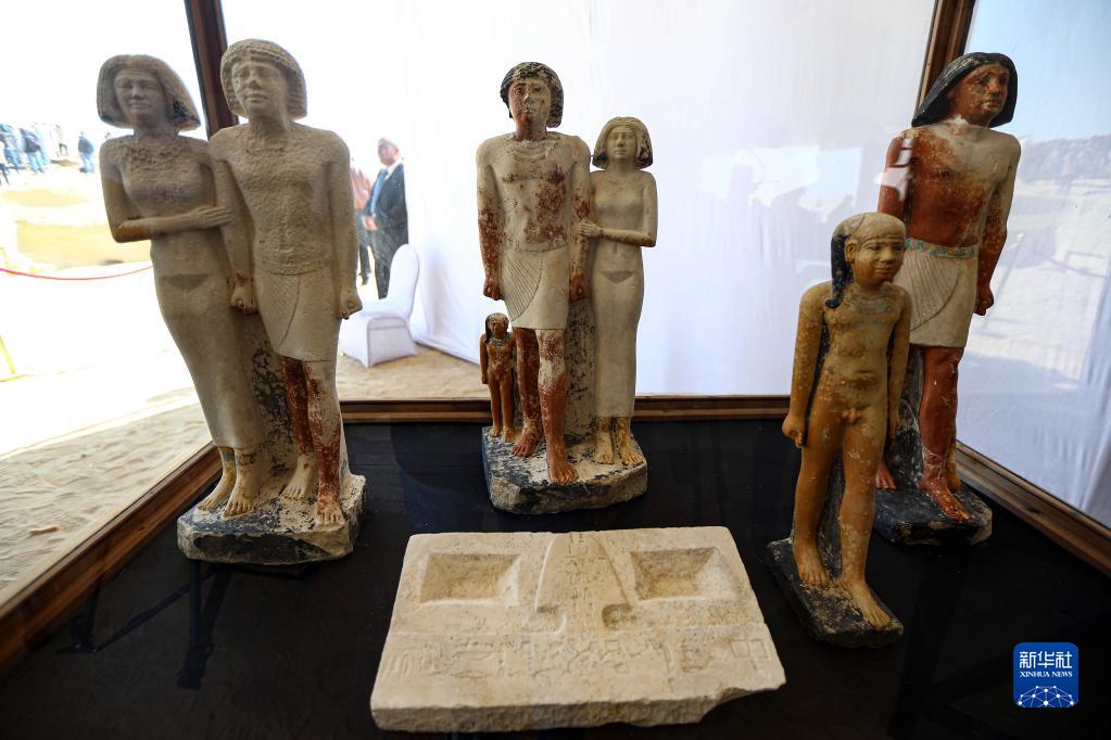 這是1月26日在埃及塞加拉地區考古發掘現場拍攝的出土文物。