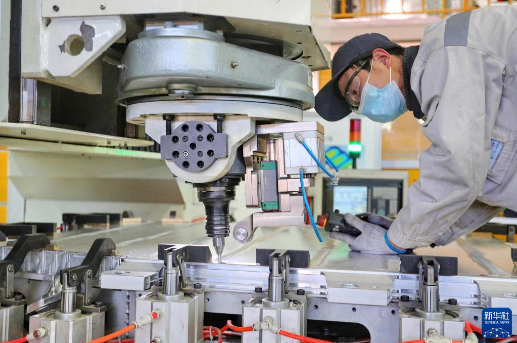 1月28日,工人在位于河北省秦皇島市海港區海港鎮的戴卡優艾希杰渤鋁汽車零部件有限公司的汽車零部件加工生產線作業。