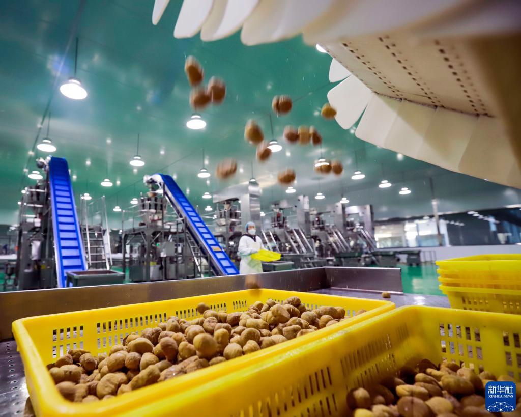 1月28日,工人在位于河北省遷西縣的唐山尚禾谷板栗發展有限公司栗仁加工車間工作。