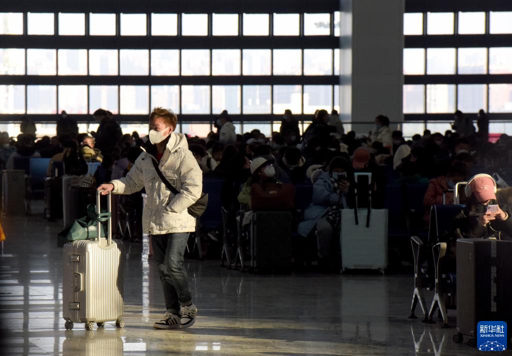 1月27日,旅客在安徽阜陽西站候車室內候車。