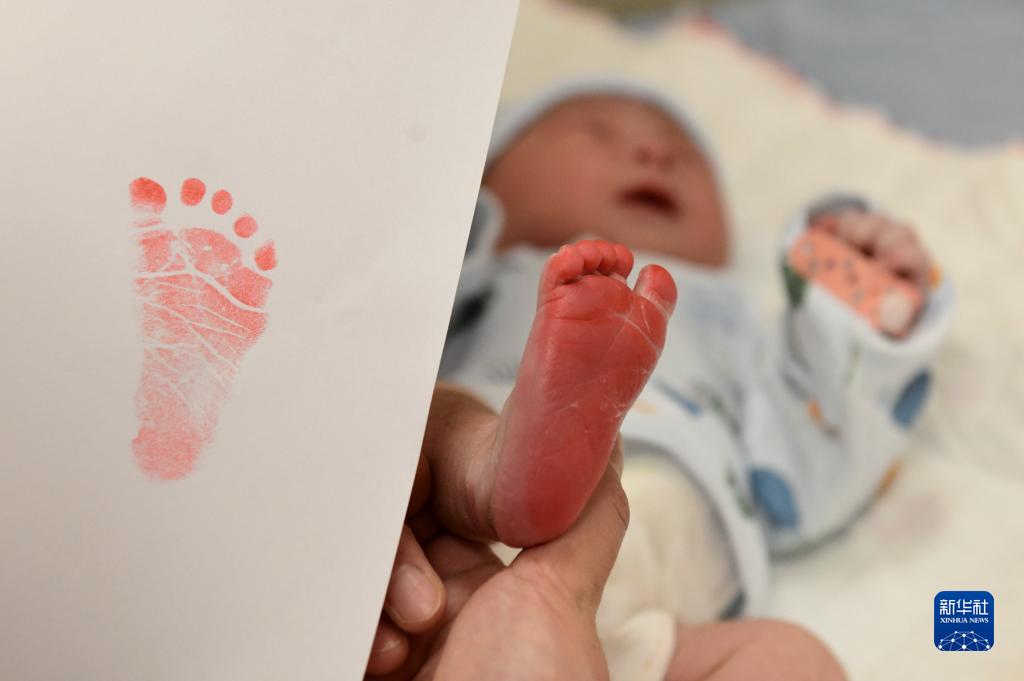 1月22日,在河北省石家莊市婦產(chǎn)醫(yī)院,醫(yī)護人員為剛出生的“兔寶寶”留下腳印。