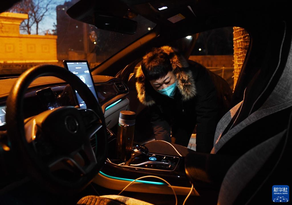 1月28日,滴滴網約車司機劉俊杰在做出車前的準備。