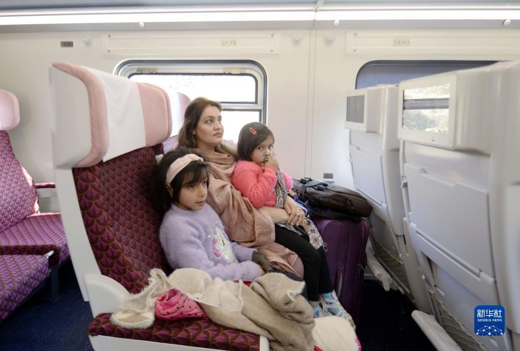 1月27日,在巴基斯坦伊斯蘭堡,乘客坐在綠線特快列車組的中國進口鐵路客車內。
