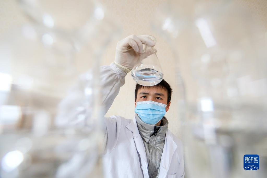 1月29日,化驗員在貴州省黔東南苗族侗族自治州岑鞏縣工業園區一家香料廠做滴定分析。