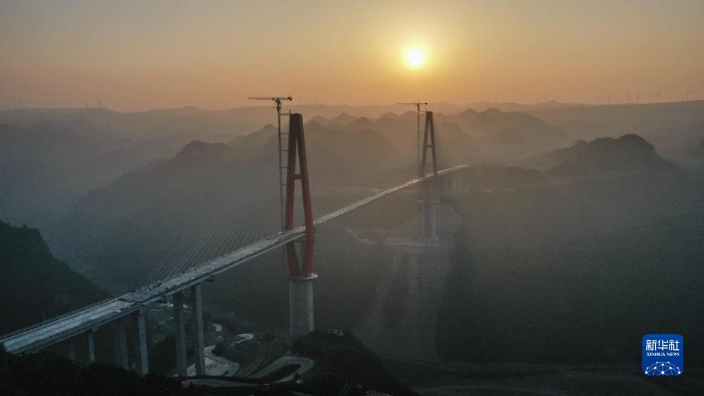 新春時節(jié),貴州省龍里縣天氣晴好,建設中的龍里河大橋沐浴在晨光中,雄渾壯觀。龍里河大橋位于貴州省龍里縣境內,全長1260米,項目建成后將更好地服務當?shù)芈糜螛I(yè)發(fā)展和山區(qū)群眾出行。