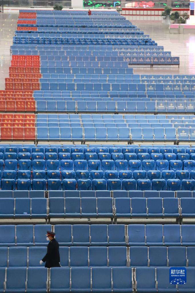 1月29日,一名鐵路職工走過空無一人的貴陽北站候車大廳。