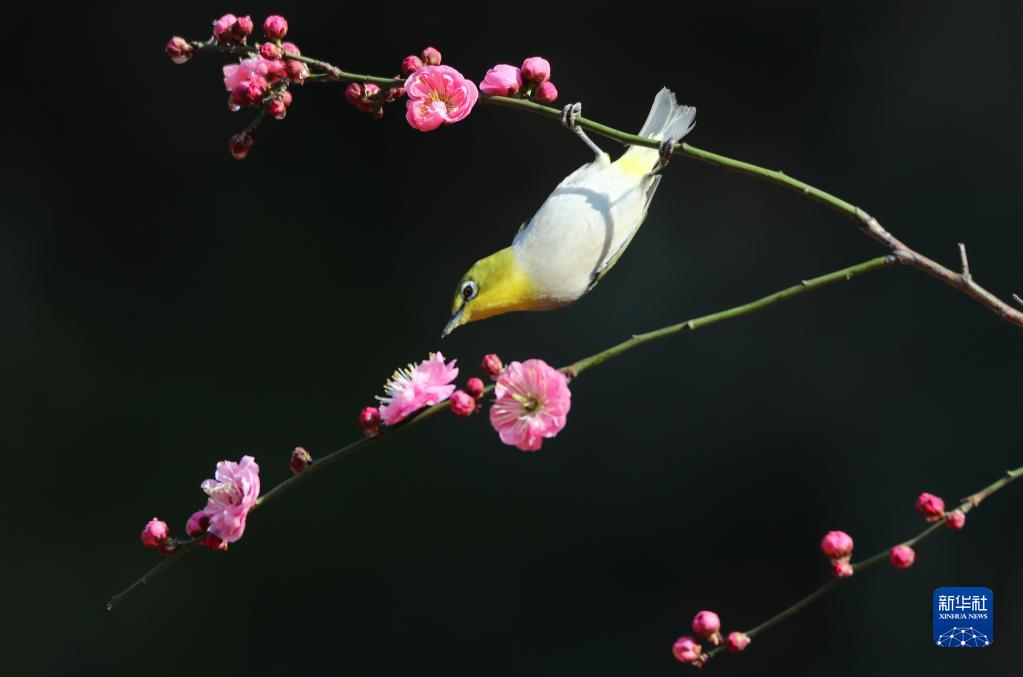 1月29日,在湖南省衡陽市雁峰區五星村,梅花悄然綻放,小鳥在枝頭鳴唱,鳥語花香迎春來。