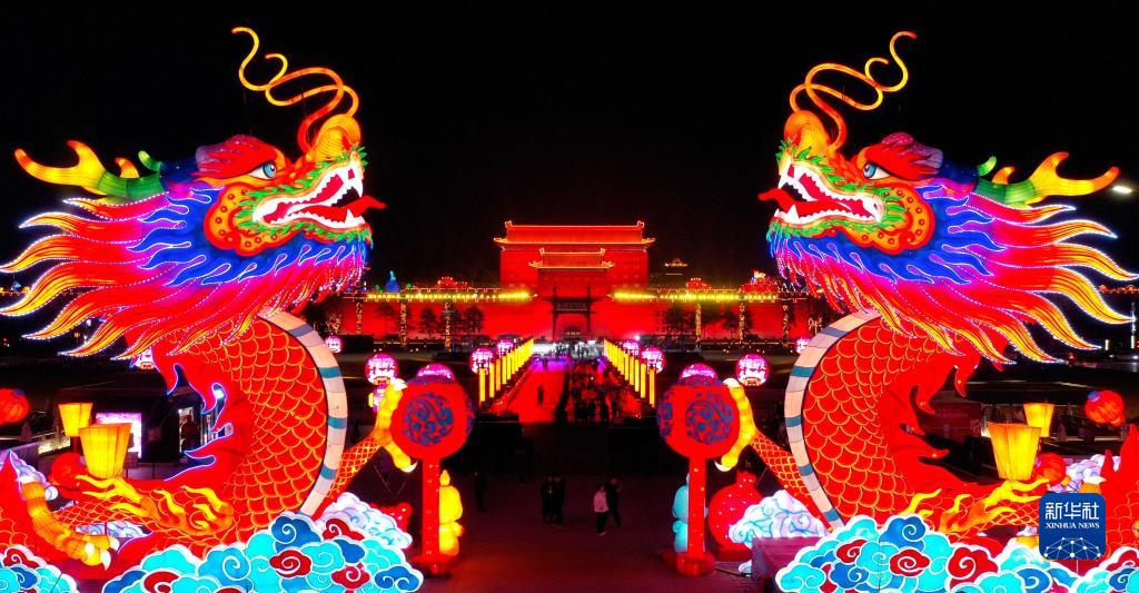 這是1月26日在西安城墻附近拍攝的花燈(無人機(jī)照片)。