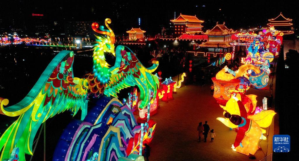 這是1月26日在西安城墻拍攝的花燈(無人機照片)。
