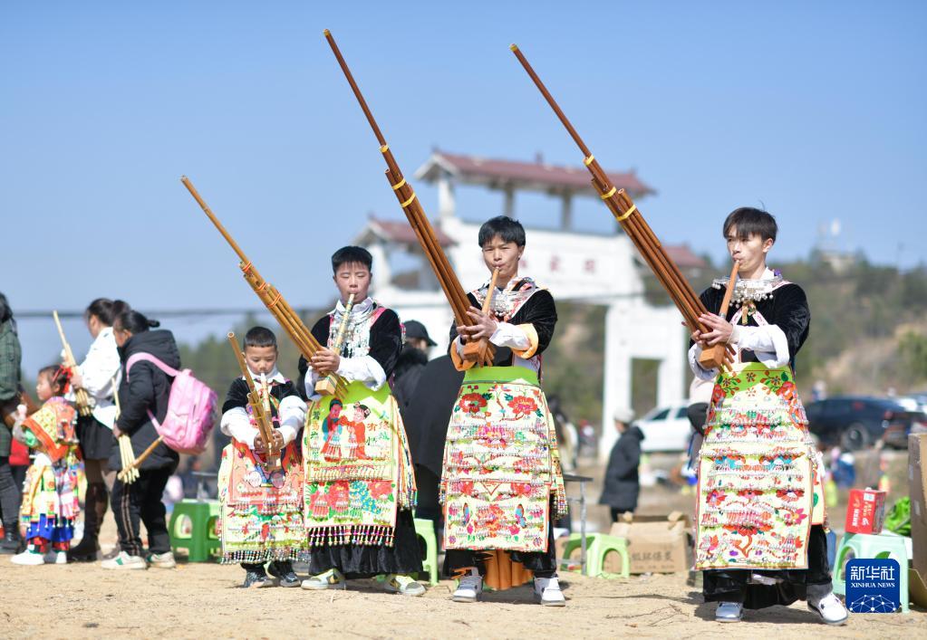 1月29日,苗族群眾在中排村參加“跳月”活動。