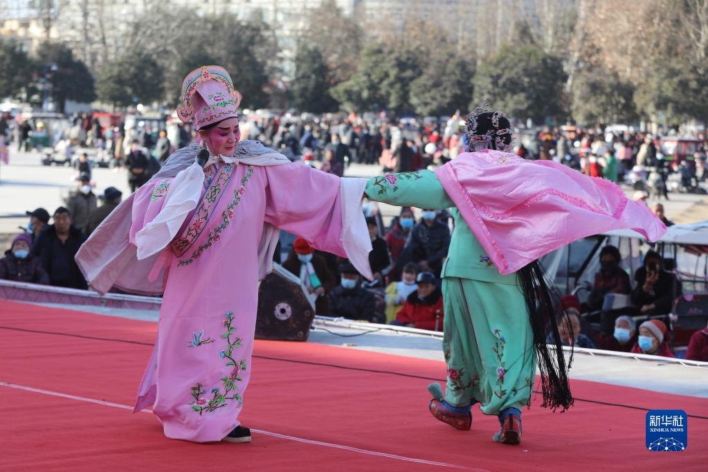 1月29日,在溫縣文化廣場,演員在表演豫劇。