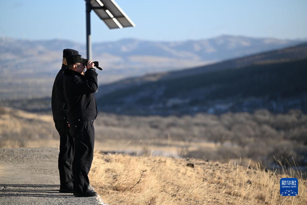 1月29日,多倫縣森林公安局灤河源國家森林公園森林公安派出所的民警在山頂上瞭望。