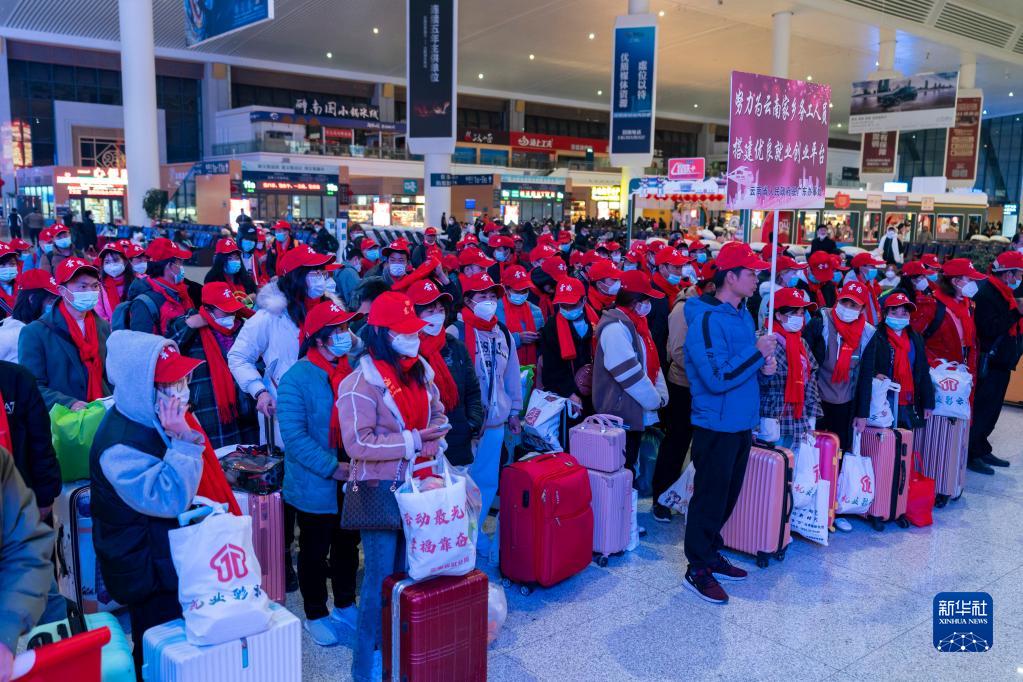 當(dāng)日,來(lái)自云南省多地的370多名務(wù)工人員在昆明南站免費(fèi)搭乘動(dòng)車前往廣東返崗務(wù)工。近年來(lái),云南省努力實(shí)現(xiàn)“兩需求一暢通”,將農(nóng)村勞動(dòng)力返崗就業(yè)需求與企業(yè)用工需求無(wú)縫對(duì)接,暢通群眾“從家門(mén)到廠門(mén)”返崗就業(yè)通道。