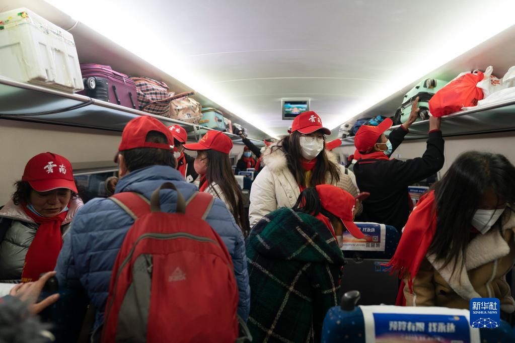 當日,來自云南省多地的370多名務工人員在昆明南站免費搭乘動車前往廣東返崗務工。近年來,云南省努力實現“兩需求一暢通”,將農村勞動力返崗就業需求與企業用工需求無縫對接,暢通群眾“從家門到廠門”返崗就業通道。
