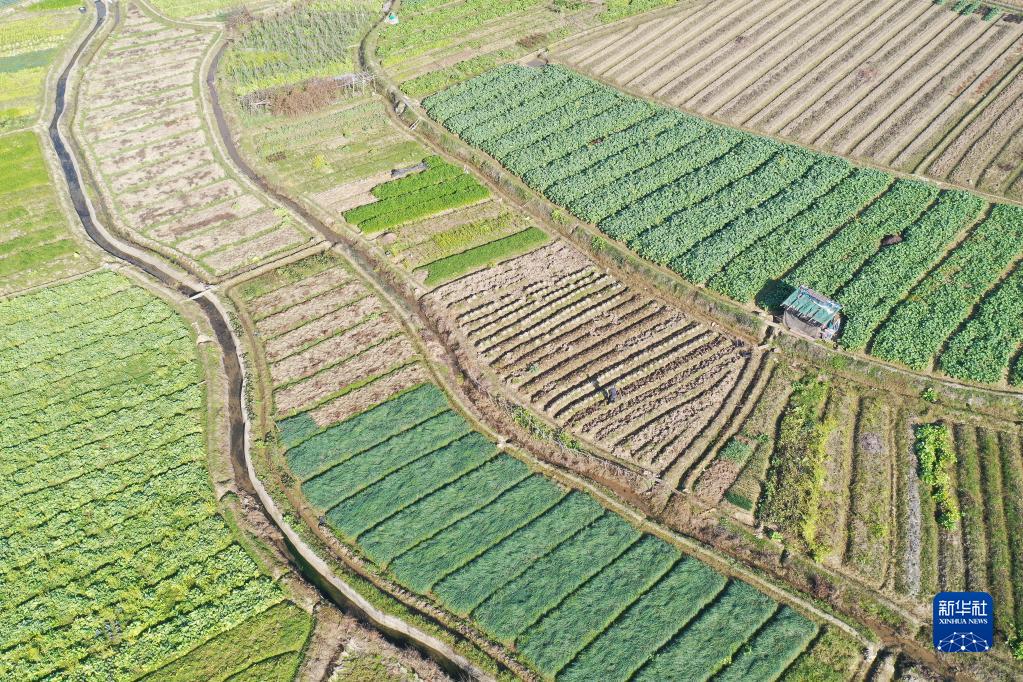 1月30日,在湖南省永州市道縣清塘鎮(zhèn)陳熊村,村民在翻地(無(wú)人機(jī)照片)。