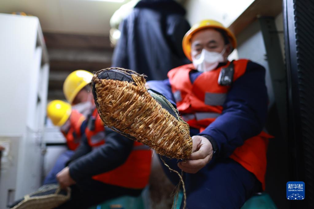 1月29日,“草鞋班”的工人工作開始前在防滑鞋外套上草鞋。