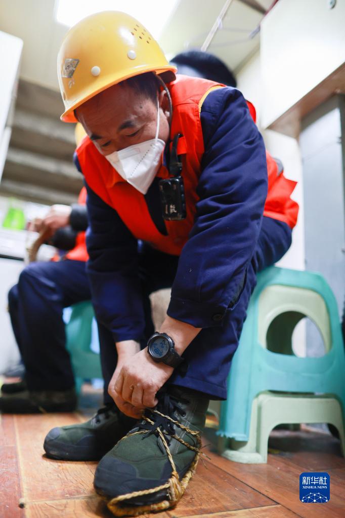 1月29日,“草鞋班”的工人在開始工作前穿上草鞋。