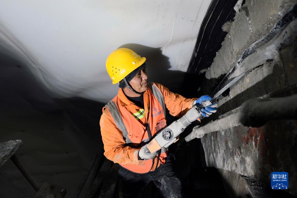 1月30日,在首都地區環線高速公路承德至平谷段楊家窩鋪特長隧道施工現場,工人在進行二次襯砌。