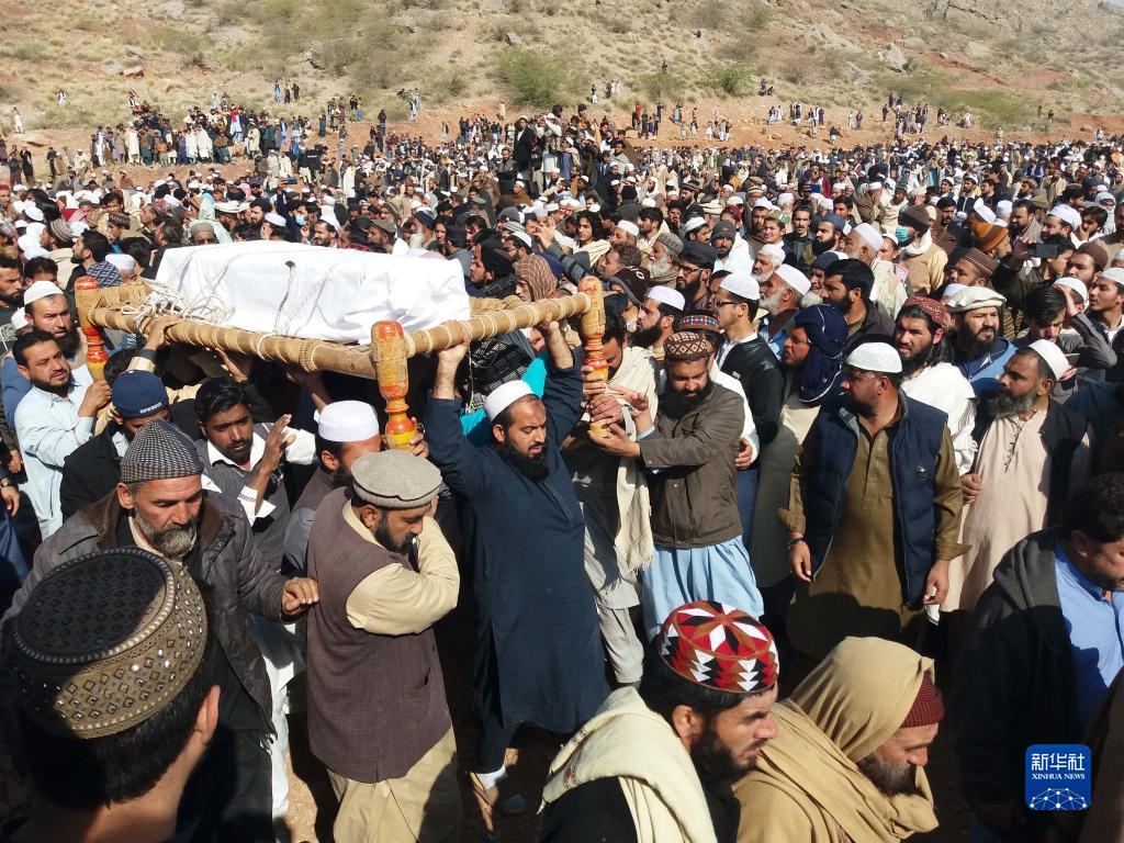1月30日,在巴基斯坦西北部開伯爾-普什圖省,人們參加遇難者的葬禮。