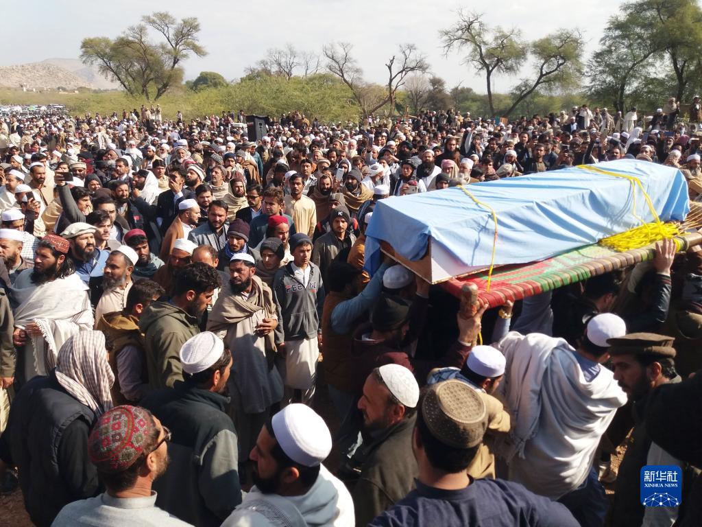 1月30日,在巴基斯坦西北部開伯爾-普什圖省,人們參加遇難者的葬禮。