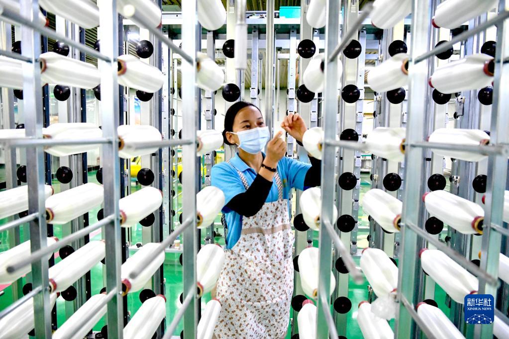 1月30日,在安徽省亳州市利辛縣一家化纖企業,工人在生產車間忙碌。
