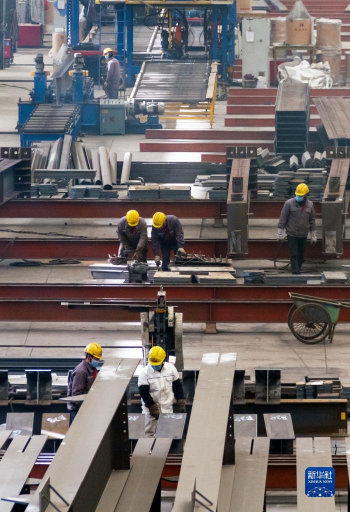 1月30日,在山西運(yùn)城一家建筑公司的輕鋼車間,工人在進(jìn)行焊接拼裝作業(yè)。