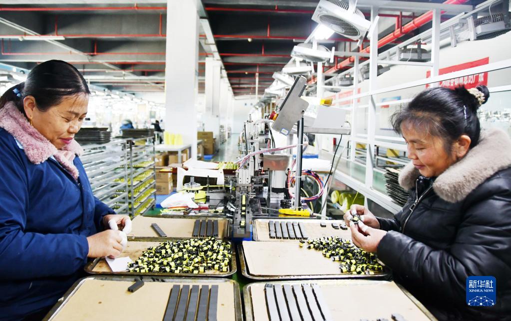 1月30日,在湖南省永州市江永產業開發區一家電子企業,工人在生產車間忙碌。