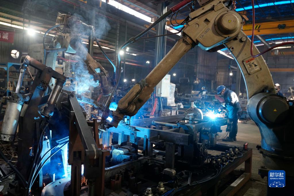1月30日,在重慶市北碚區一家涂裝技術企業,機器手臂在焊接汽車車身。