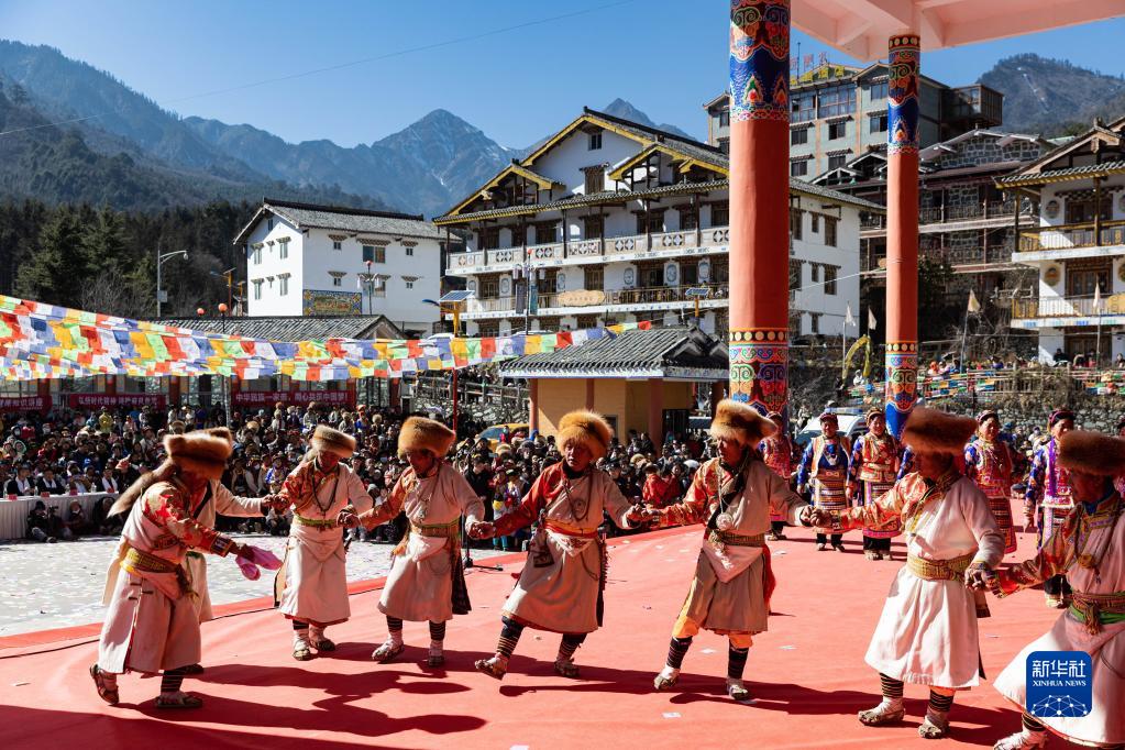當日,在夾金山山腳下,四川省雅安市寶興縣磽磧藏族鄉的藏族群眾身著盛裝,慶祝一年一度的“上九節”。近年來,民俗旅游接待成為當地支柱產業,“上九節”已成為當地推介民俗旅游的一張閃亮名片。